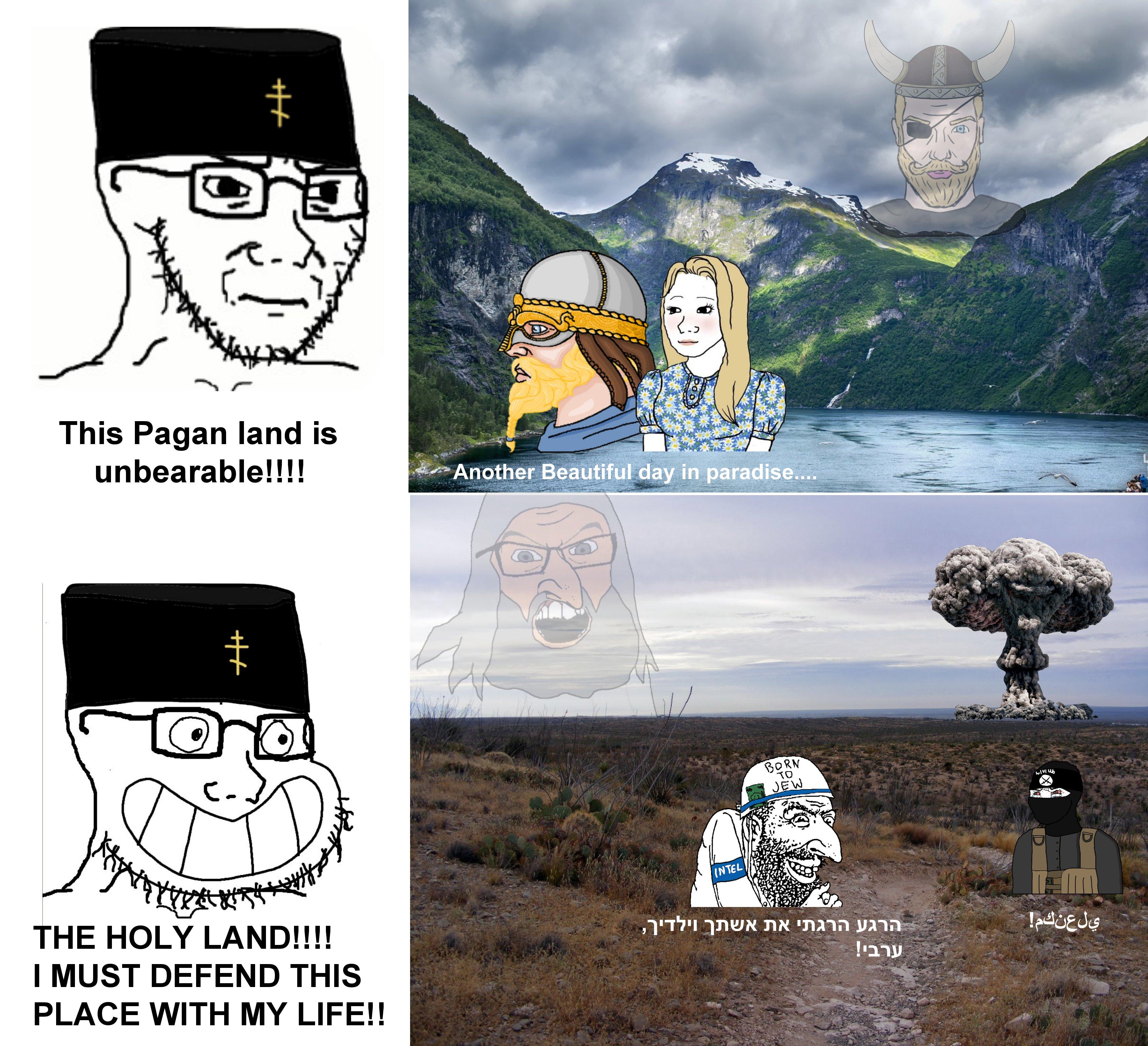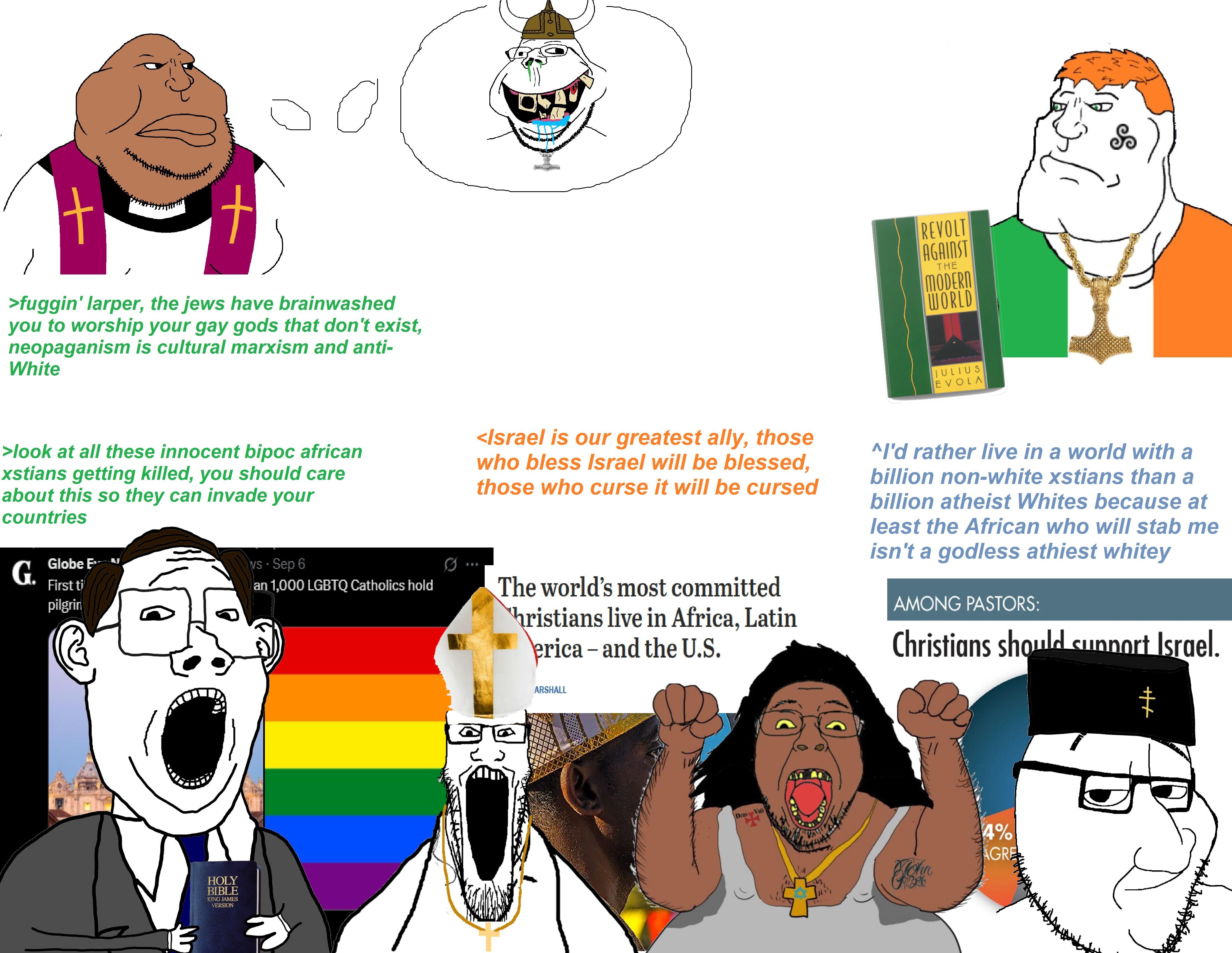 >Another beautiful day in paradise… (yeschad, tradwifejak, another yeschad)>Another soyjak xitter comic>Horribly formatted "meme" comic of the le wholesome paganx atheist irishman getting bullied by the heckin unwholesome genderqueer priestI mean seriously dude. the formatting on the 3rd picrel you posted in the OP is formatted worse than a goyimTV flyer