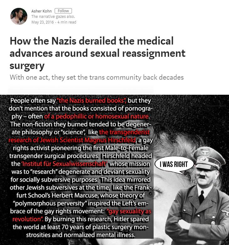 >why does every nazi like trannys because trannies are pushed by jews pics related