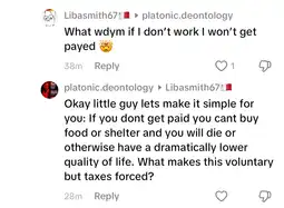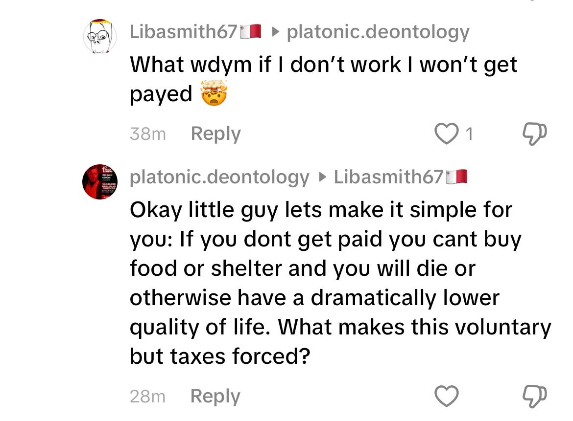 >>2607230They say that needing to work to survive isn't voluntary and says that taxes are , they're genuinely so dumb.