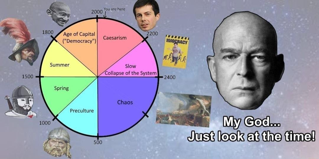 >>26178165000 years of written history has always had a republic fall, enter into a empire, and then there is a golden age
