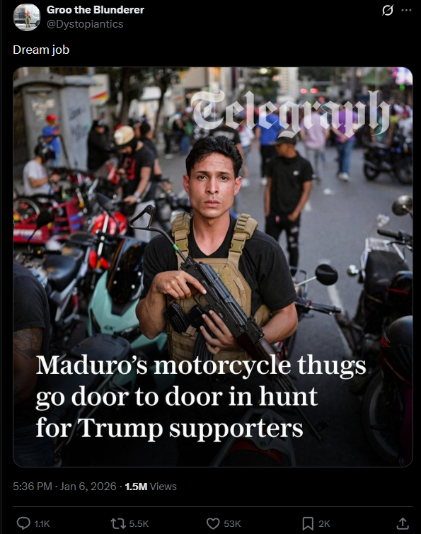 >>2645164>Trusting whatever is said on twitter>>2645189As you can see venezuelans do not fucking resist