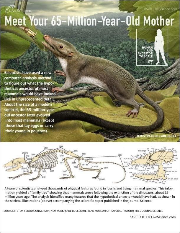 you can say rodent analogues but not rats, also monotremes, marsupials, and placentals (mammalia) diverged from mammaliformes >150 mya not 65 mya, but yeah this is probably what human ancestors looked like at that point