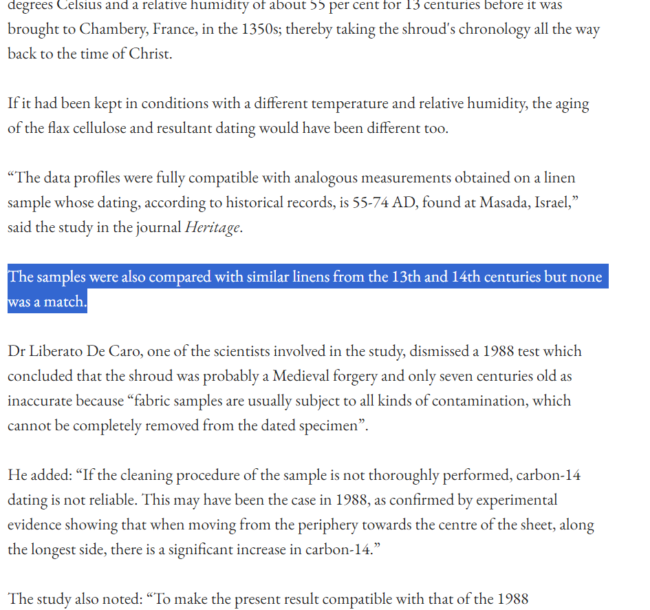 >>2684886>>2684883The X-Ray method used in that examination is not as scientifically standardized as carbon dating and makes a lot of assumptions on how the shroud was stored which could affect how the X-rays scattered.