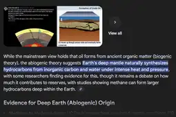 >>2687862While the intense heat and pressure from the earth can transform surface based carbons and hydrogens into combustible materials. I am under the belief that the earth naturally makes coals, oils, natural gas from carbon and hydrogen molecules which are abundant within under intense heat and pressure, and im not the only person who has held these views.