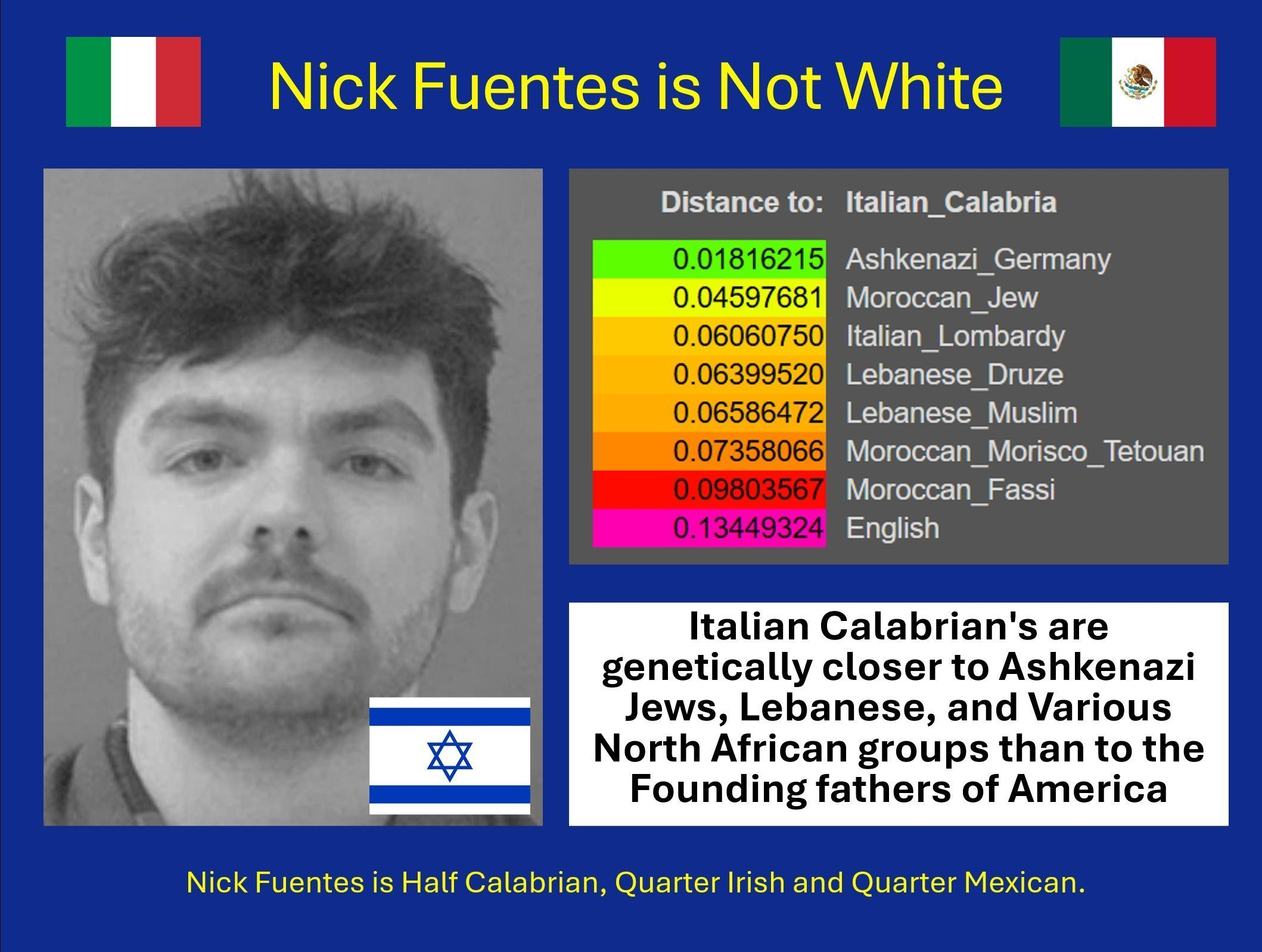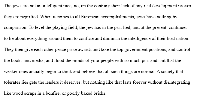 >>2706867i basically already looked at all of that and talked about it in parts over the years online, but i do not limit my conclusions to just genetic, or just religious, or just ideological practices when i talk about the term "jew"