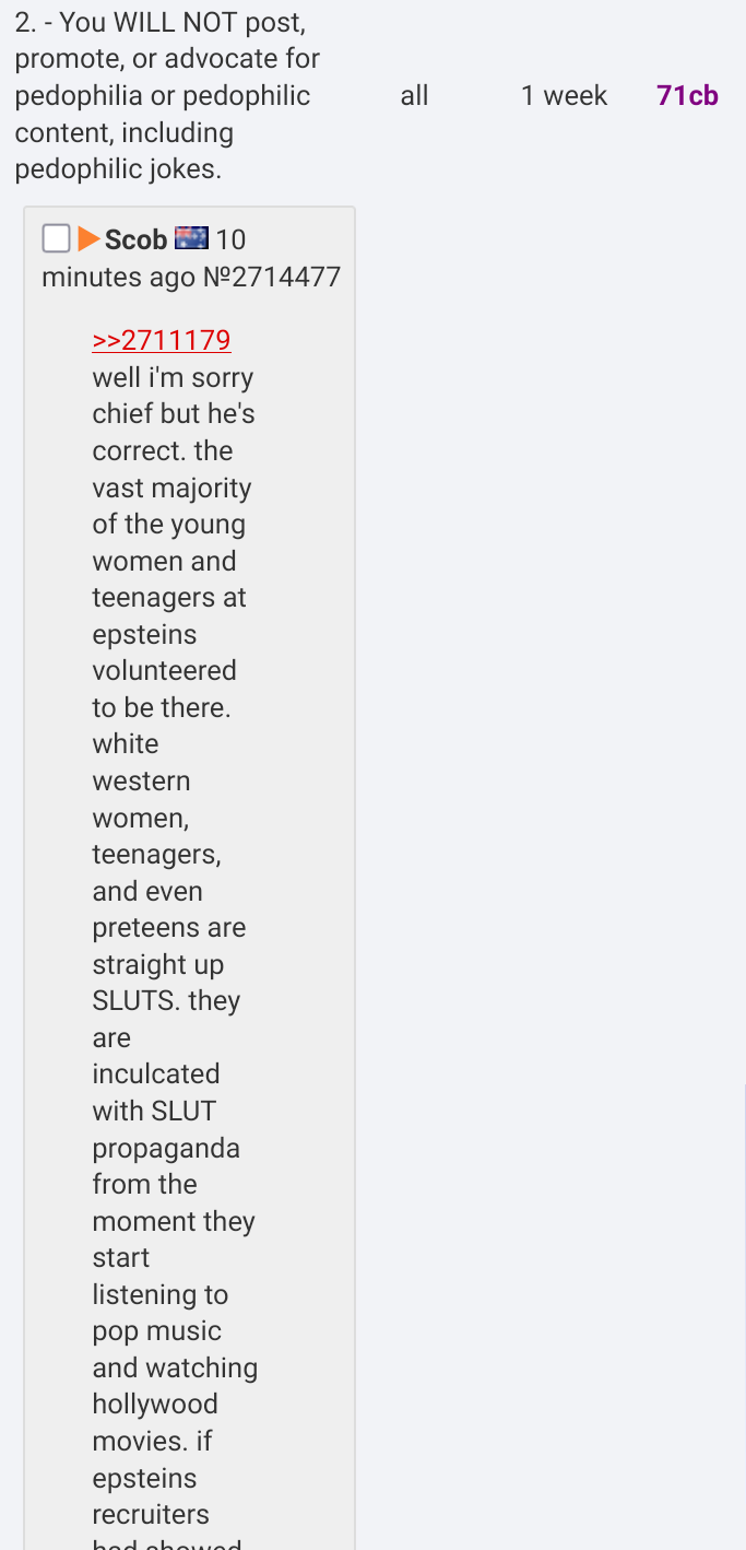 >>2714545i just realized quote posted this, i see why you would give him a week ban instead of a perm
