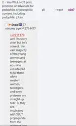 >>2714699what kind of person calls minors sluts, why would jannies give him a 1 week ban over this