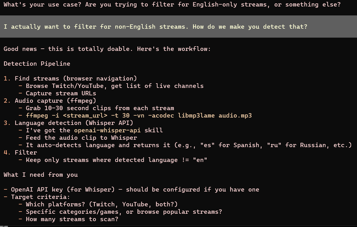 >>2748745Want me to use Clawdbot to make a bot that scans Brapzilian livestreams for people speaking African languages?