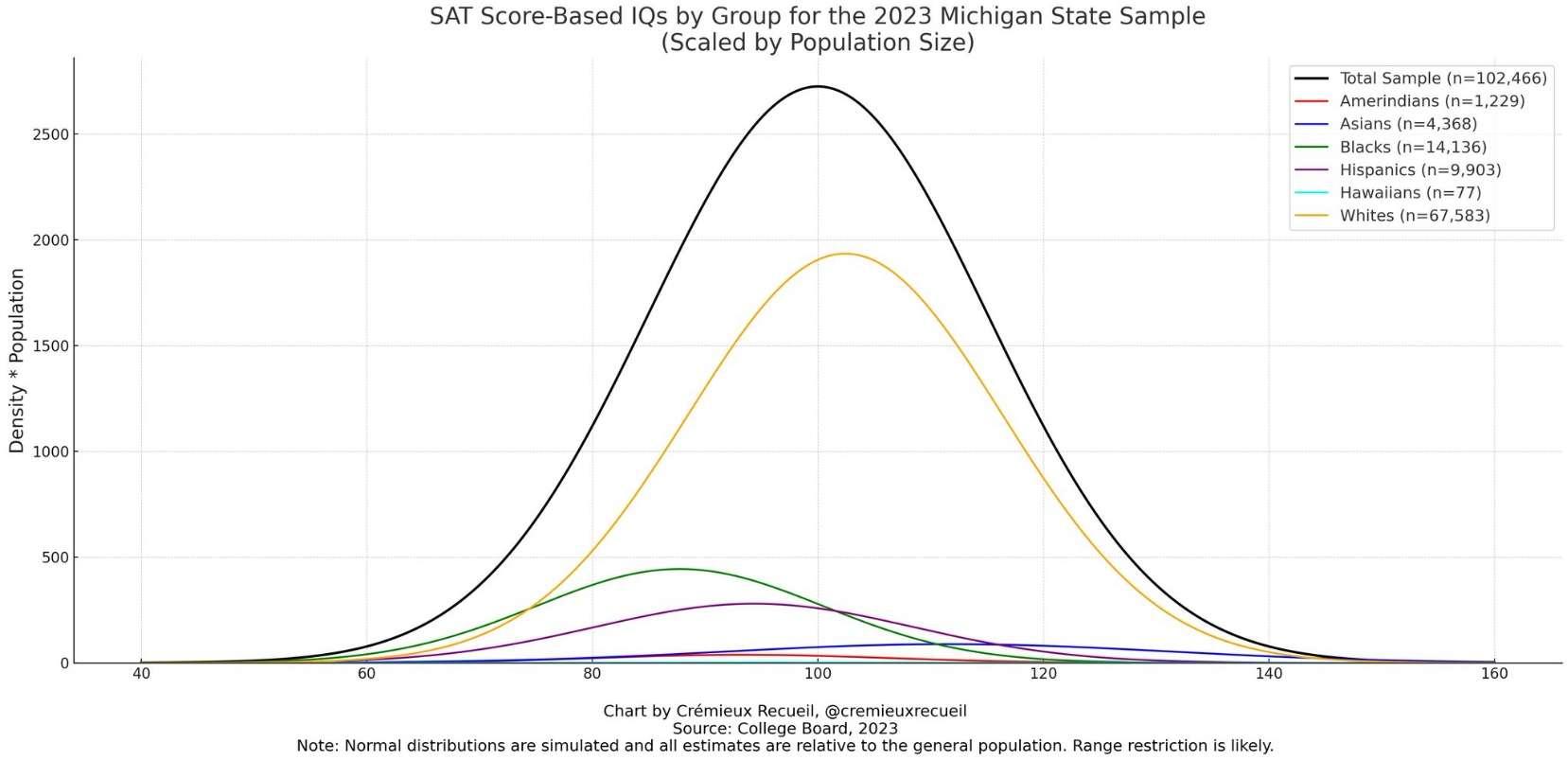>closer the average the IQ is too 100 (the average human IQ)The average "human IQ" isn't 100, that's the average mean normed to british samples. IQ is a relative measure. If you see an iq map, the british white norm is set at 100 and all other countries are measured relative to that, so if it's above or bellow it's relative to white britons(usually)