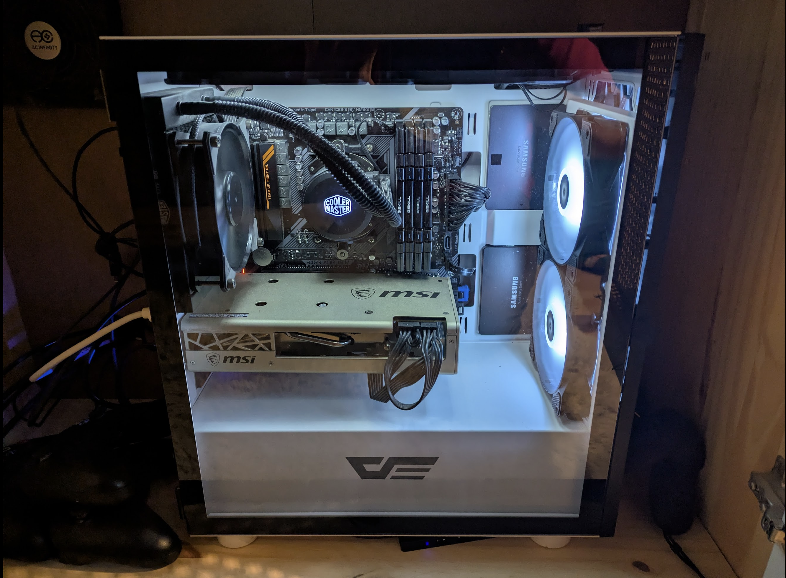Everything in this PC is like 6 years old. The GPU is a 5700 Evoke XT, 32gb ram, I think the cpu is a Ryzen 5000 series. Pretty basic computer. I bought the GPU because of the way it looks. I refuse to upgrade until I absolutely have to.