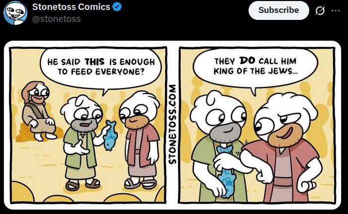 >>2770576>But I'm assuming he hates Christianity.he made a joke about christ being jewish because he only gave one fish to feed the people who came to hear him speak