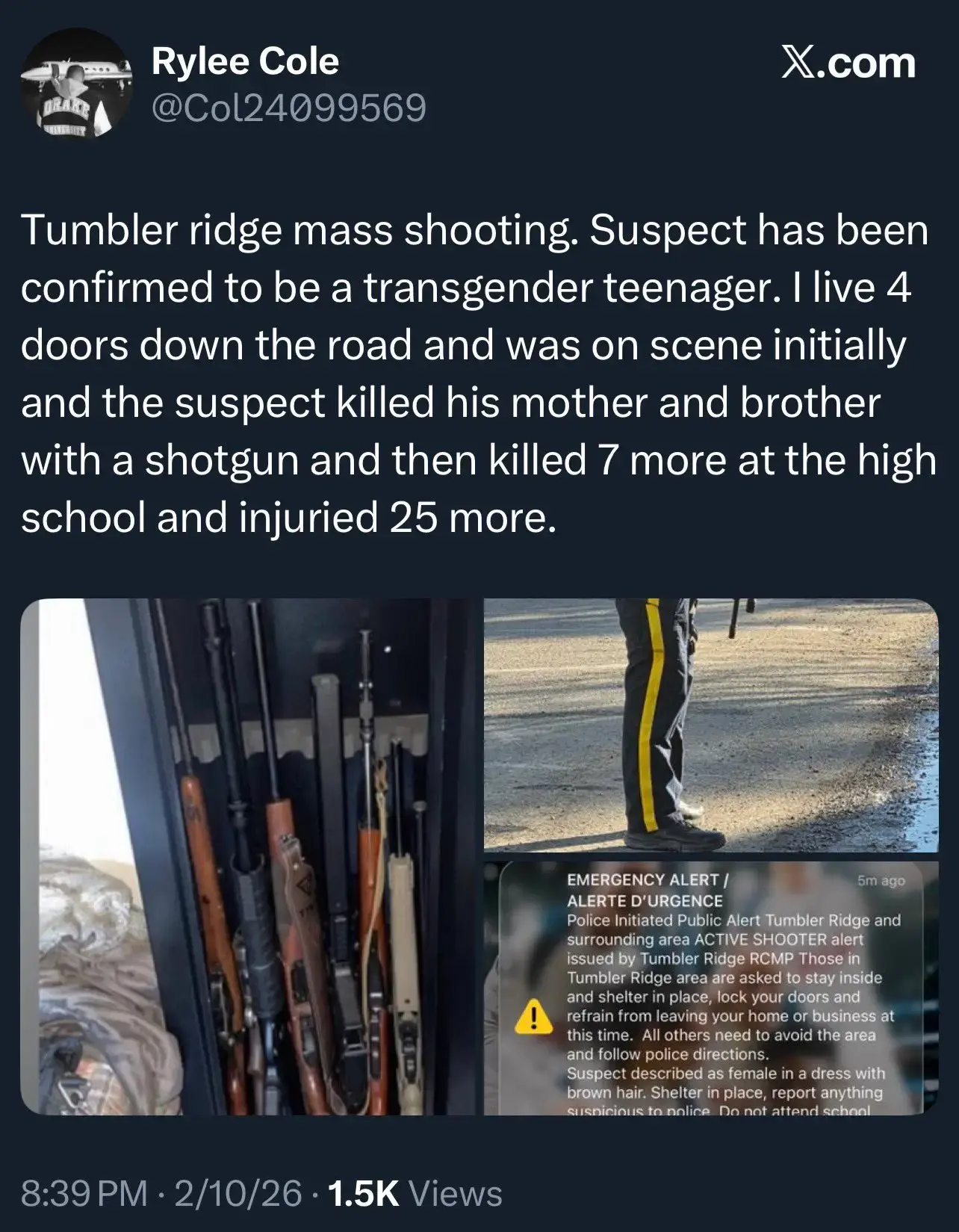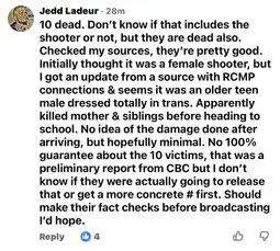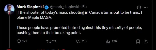 "Reminder that the Prime Minister of Canada has a "transgender" kid. He/She/They could shoot up your house tomorrow with no warning. That's what these people do"