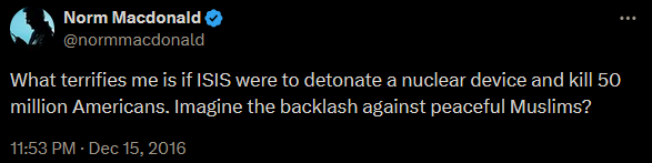 >>2845599I'm just suggesting they get the same treatment as any other group which produces rare-but-significant violent extremists, but I guess that's "so retarded you deemed it not worth responding to."