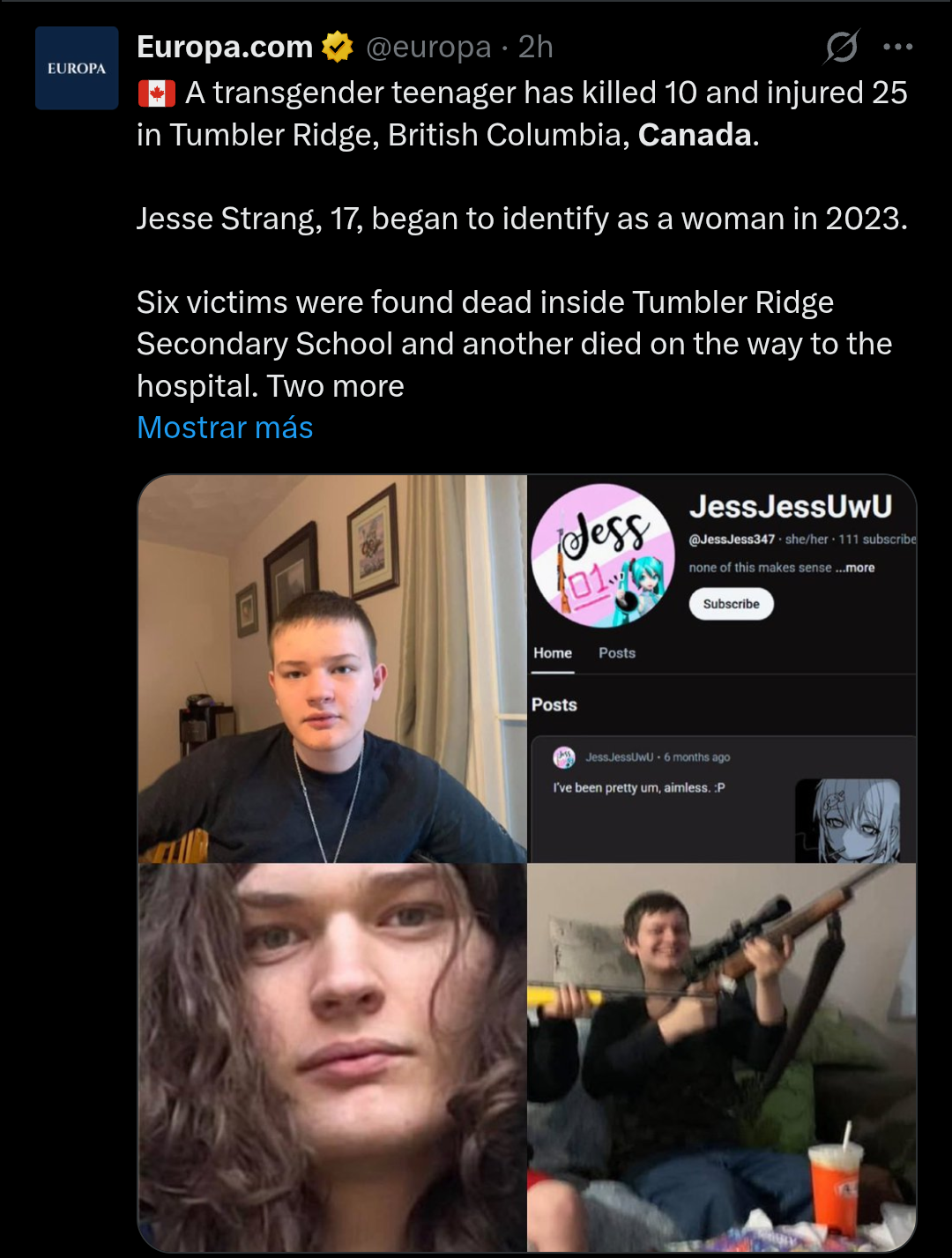 >>2842704>>2842704>osint niggers somehow manage to get the last name wrong OSINT cucks xir name is Jesse Van Rootselaar, not stang