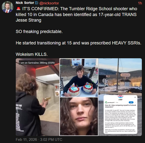 >>2845863When I look on Reddit it says Jesse Van Rootselaar 18 yo trans woman.