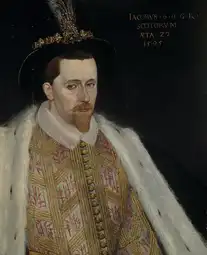 By the late 1590s, James's championing of native Scottish tradition was reduced to some extent by the increasing likelihood of his succession to the English throne.[87] William Alexander and other courtier poets started to anglicise their written language, and followed the king to London after 1603.[88] James's role as active literary participant and patron made him a defining figure in many respects for English Renaissance poetry and drama, which reached a pinnacle of achievement in his reign,[89] but his patronage of the high style in the Scottish tradition, which included his ancestor James I of Scotland, became largely sidelined.[90]