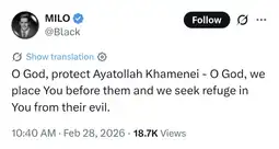 "Dem don spill our blood, murder many Americans, and massacre dia own pipo. Dis murderous terrorist regime must not be armed wit nuclear weapons wey go fit allow am to threaten all of humanity. Our joint action go create di conditions for di courageous Iranian pipo to take dia destiny into dia own hands.