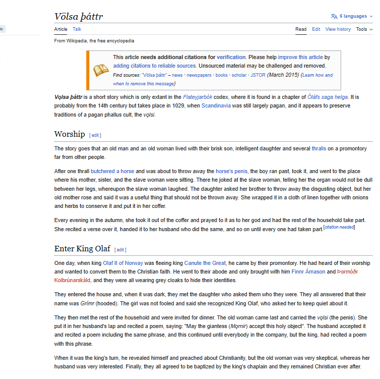 i assume this was likely fabricated because the horsecock was given to the giants (analogue to the demons in scandinavian mythos), it was basically calling these people devil worshippers before being enlightened by Christ
