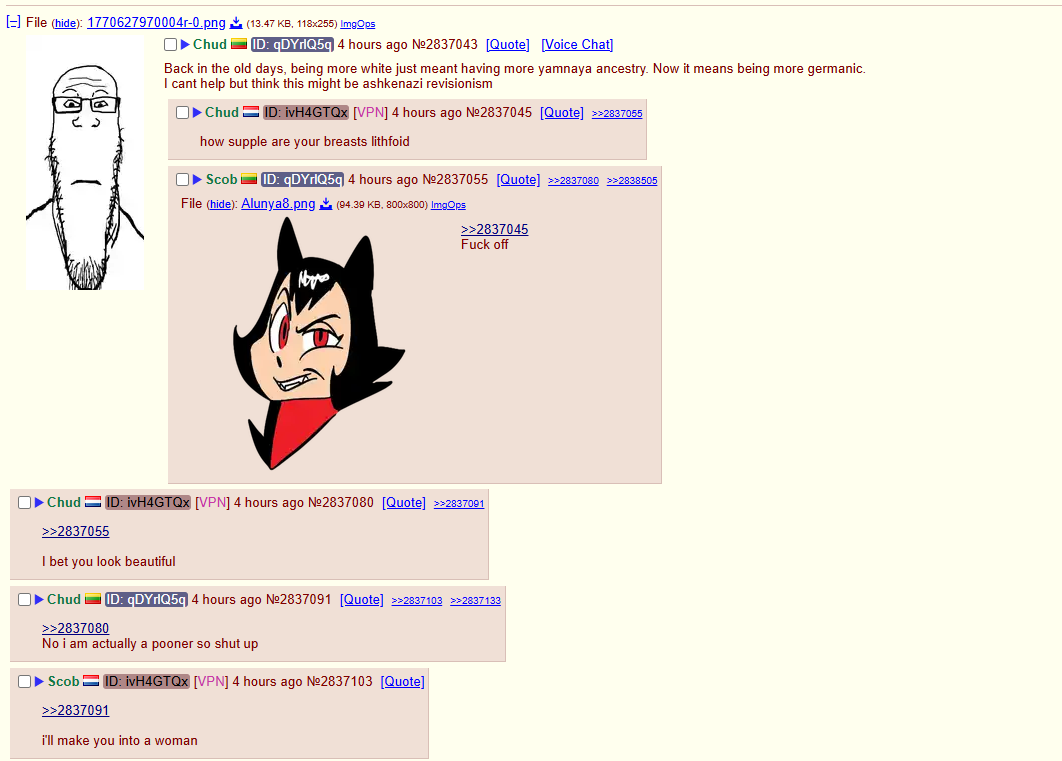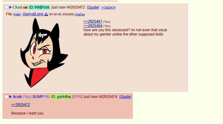 1. lithfoid whom i sexually harassed off of the board before she got mindbroken and became chuddy