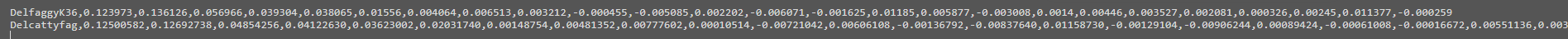 Delcattyfag,0.12500582,0.12692738,0.04854256,0.04122630,0.03623002,0.02031740,0.00148754,0.00481352,0.00777602,0.00010514,-0.00721042,0.00606108,-0.00136792,-0.00837640,0.01158730,-0.00129104,-0.00906244,0.00089424,-0.00061008,-0.00016672,0.00551136,0.00329026,-0.00096648,0.00757820,-0.00136300