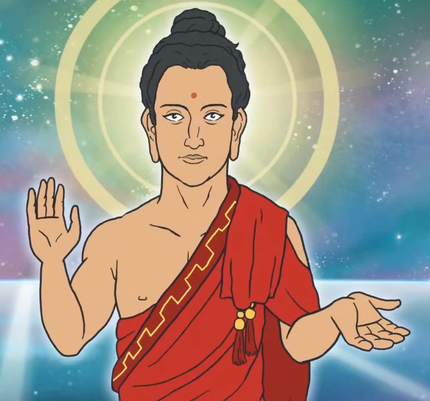 During the ensuing horrible war, a bodhisattva hero arises; his army eventually wins out on behalf of gentler religions. Some say he's from the north, around Turkestan; others that he's from a symbolic inner world. His forces consist of everything from battle-mad elephants to flying ships. Those who've taken the Kalachakra will be reborn among the good guys; an era of peace and wisdom ensues from their victory.