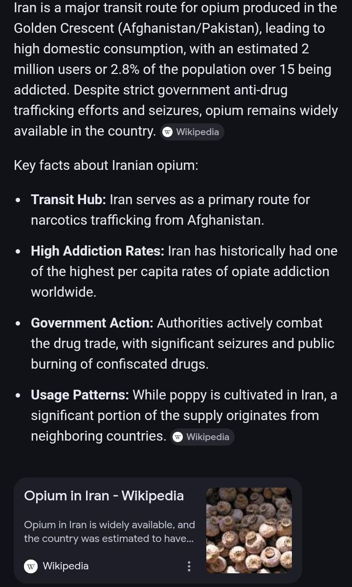 The reason trump agreed to go after Iran this time is because of their opium production. Trump knows he has to get junkies off heroin and heroin like products, if he's going to deport spics. Because all those guys that get off drugs have to go back to work. Also, Iran helps fund spics like Venezuela and the cartel.