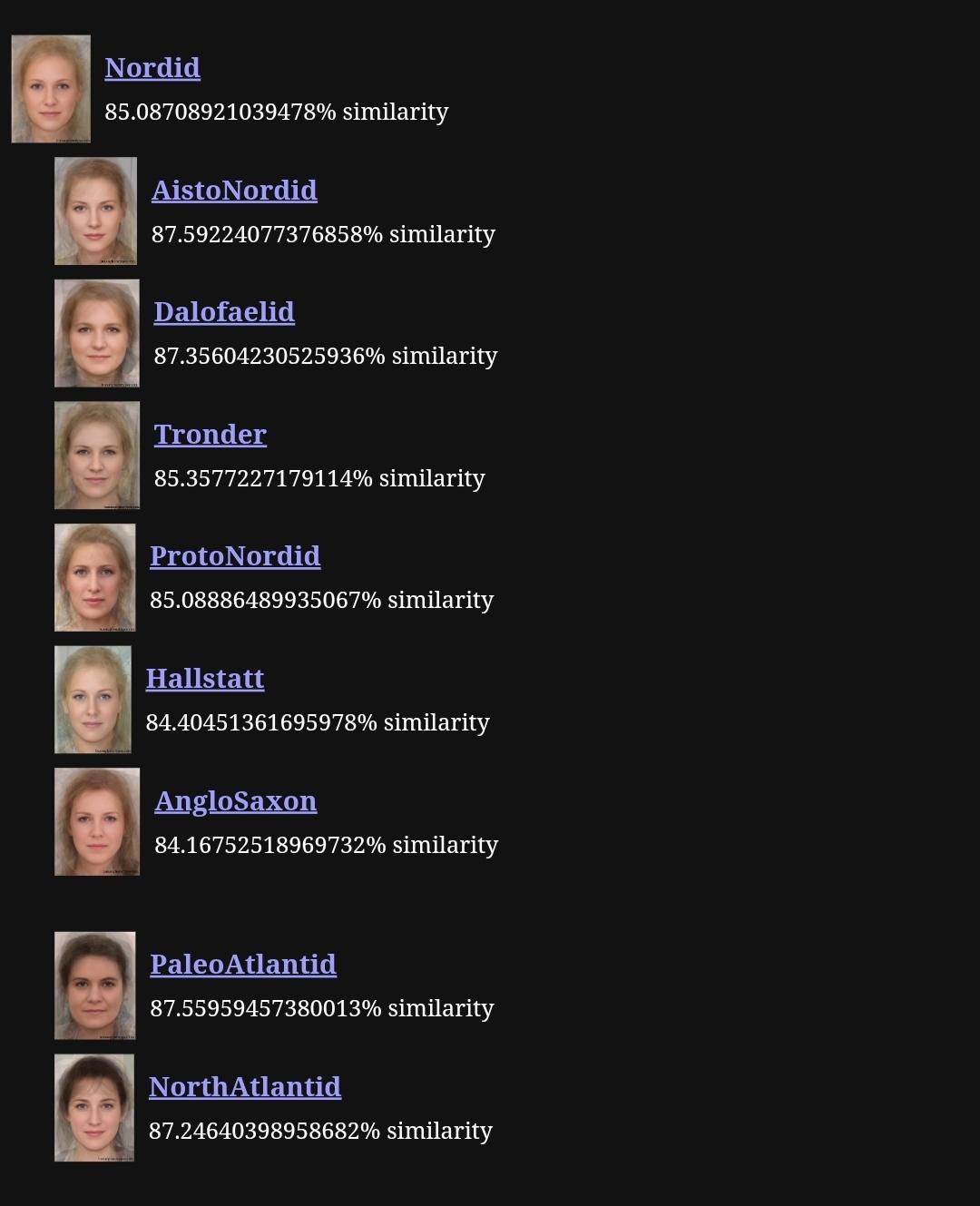 >>2973581Yes, based on the facial similarity analysis you're sharing (which appears to come from one of those online anthropological phenotype/AI face-matching tools), you align very strongly with classic Nordid and related North European subtypes.