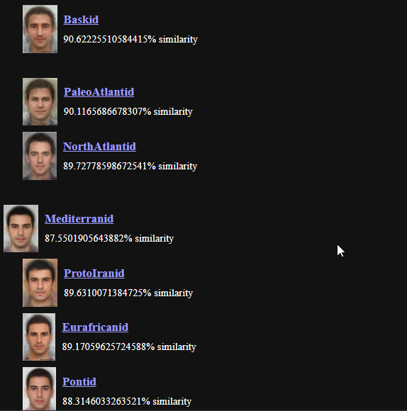 So yeah - you're "whyt" (or yt/white) according to this kind of facial clustering system. The percentages are extremely high for those specific subtypes, meaning the match is about as strong as these tools usually get for that category.