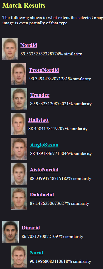 >>2986102I mean I doubt I am too, I am just saying I think I am actually some mix of Nordid/Alpinid/Dinaric and I think the test is identifying me as a weird phenotype because of my mutted face.