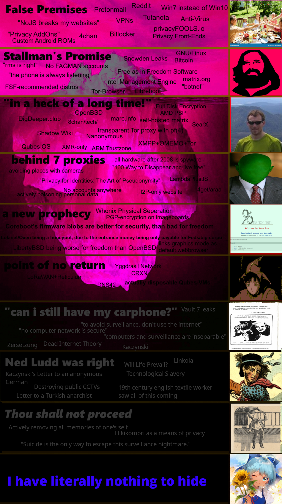 >>2987117Call me schizo but Snowden was probably a false flag. The feds know they can get away with anything, they got away with the leaks, they got away with Epstein, they can rape your children in front of you and they would still rule the country, they leaked some of the things they did, then Snowden gave some "OPSEC tips" about already compramized systems (like TAILS and shit which has blobs), so the feds could spy on the schizo's easier
