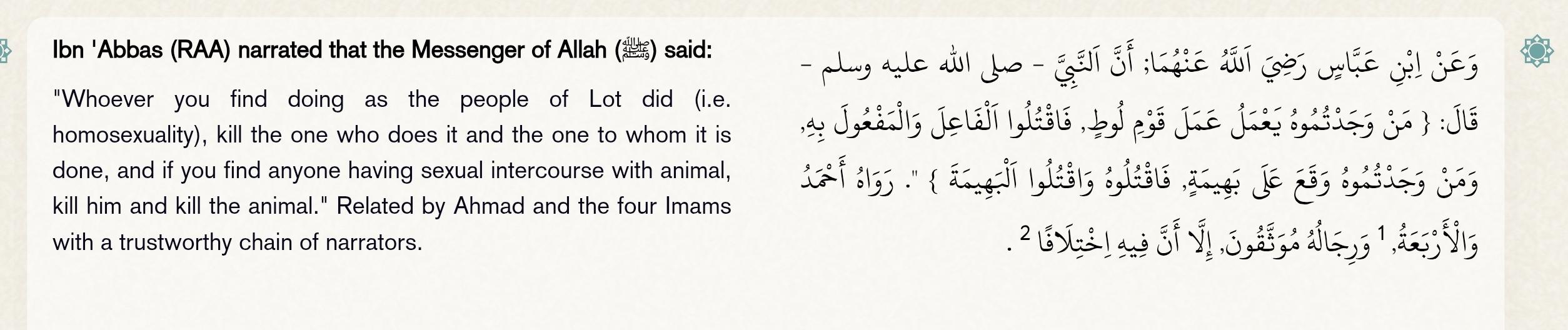 >>3003546abuu dawud himself called a similar report "not strong" because it conflicts with authentic chain from the same ibn abbas saying there's no fixed hadd for bestiality meaning no automatic lashing like zina yet still severe tazir penalties the "disagreement" is just standard hadith scholarship noting variant opinion kek