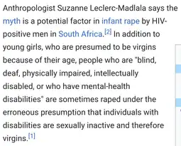 Read the wiki, "traditional OMGSISA" literally tell aids and hiv men to rape virgins, because they believe itll fix it..