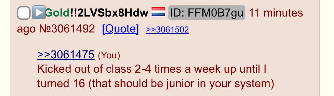 skipped school often because it was a nigger school and too easy for me, never studied for a test or exam. (still scored 8-9/10 on almost all subjects)