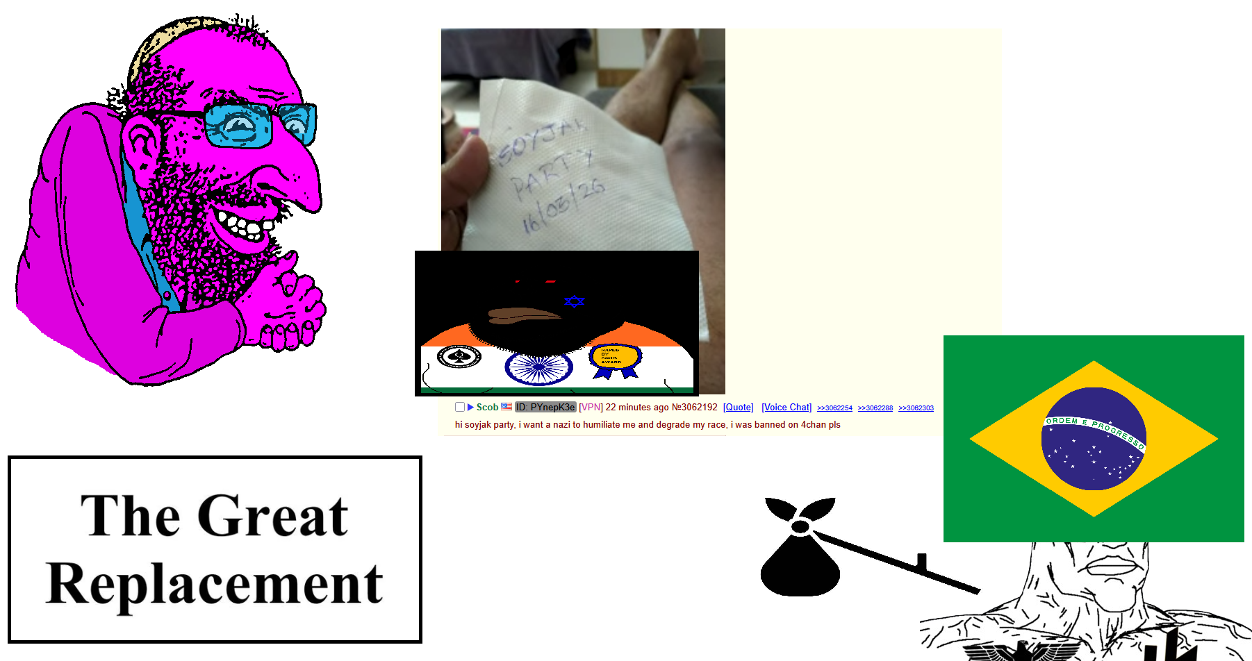 >>3062440he made a thread on /soy/ i think trying to find speds that would do anything you told them to and they landed on this jeet thats where these pics came from