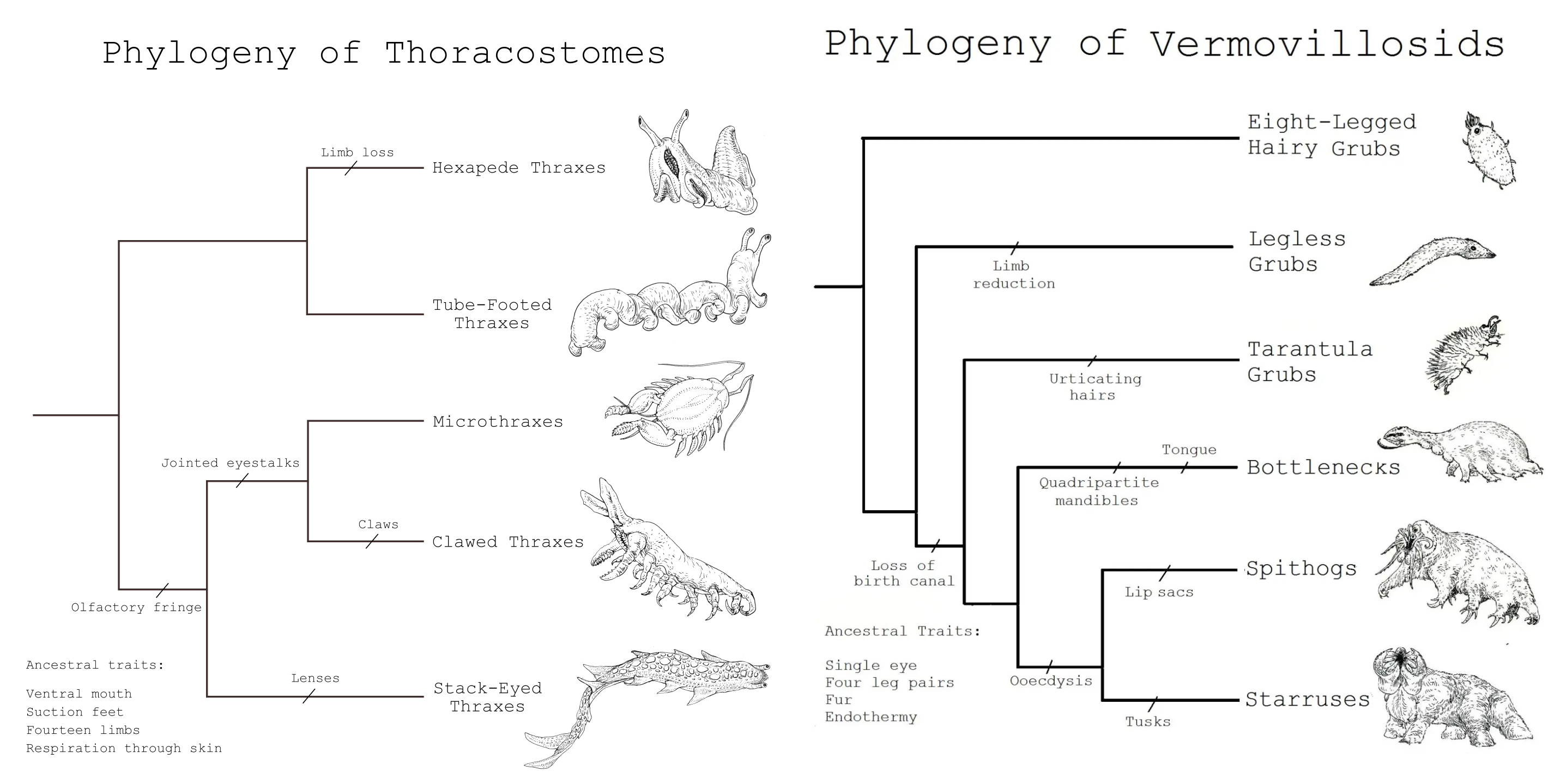 >>3084243There's a lot of Thraxes and Vermovillosids but I like how Thraxes have a ventral mouth and a Vermovillosid has one eye!