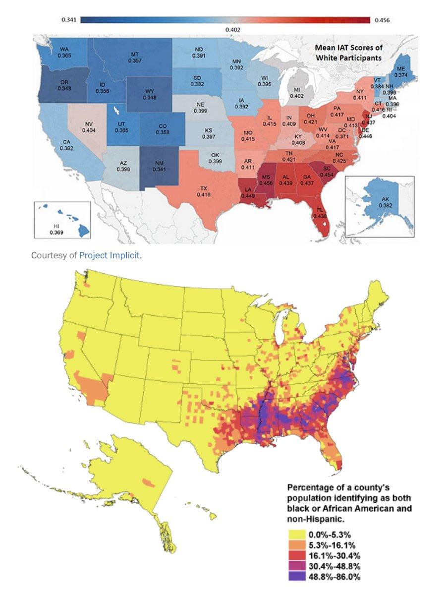 >or you wouldn't have many non-black people defending them4th image shows the implicit association test with a map of black population in US