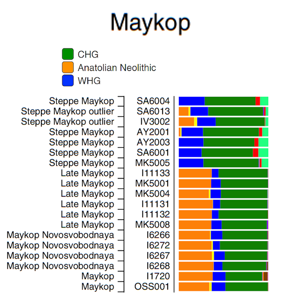 <The Maykop people are not indo-europeans they are majority CHG and were the founders of the north caucasian languages so obviously they don't genetically cluster with europeans