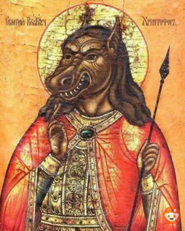 >>3107820Saint Christopher's iconography is strange, supposedly the reason why he's cynocephalus is because of a mistranslation of Canaan from Latin (Cananeus) into Canine, which then made the easterners portray him as a giant man with a wolfs head.