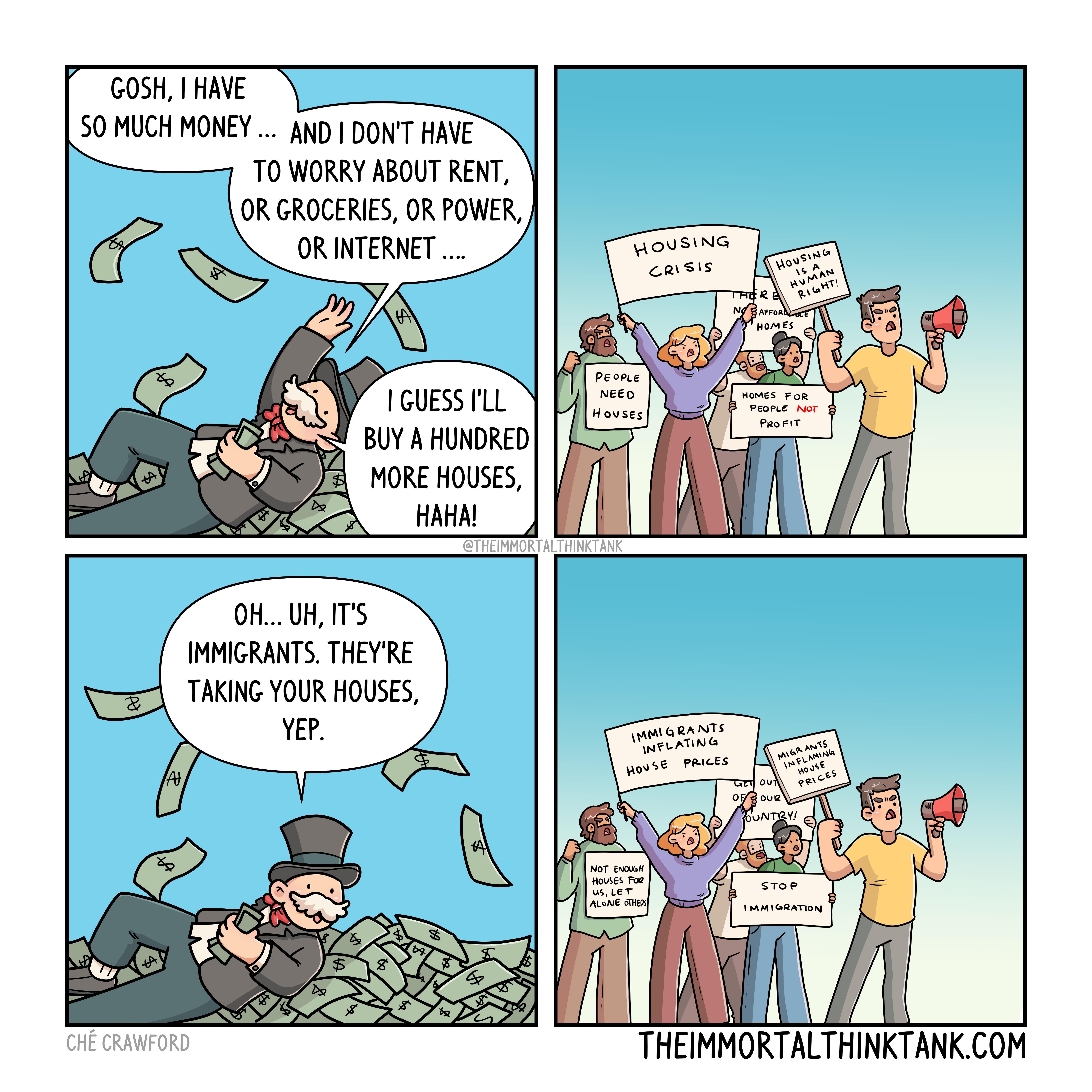 its not entirely true though, people have to compete with immigrants in the job market so they can at least AFFORD a rent, nothing is blax and hwite