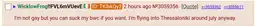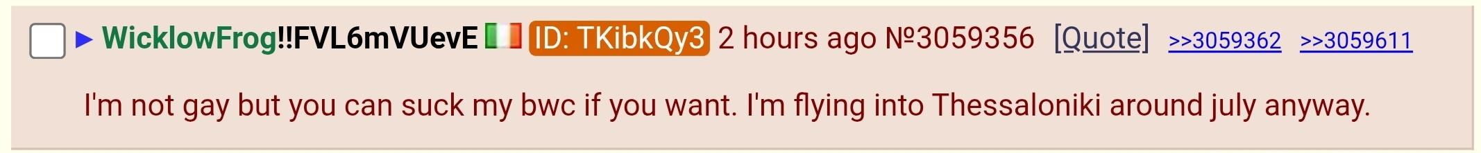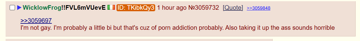 Wicklow isn't gay they've just said some sus things, but they'd never shove anything up their ass or engage in faggotry stuff o algo. Unless put namefagging and avatarfagging on the same brimstone tier as sodomy.