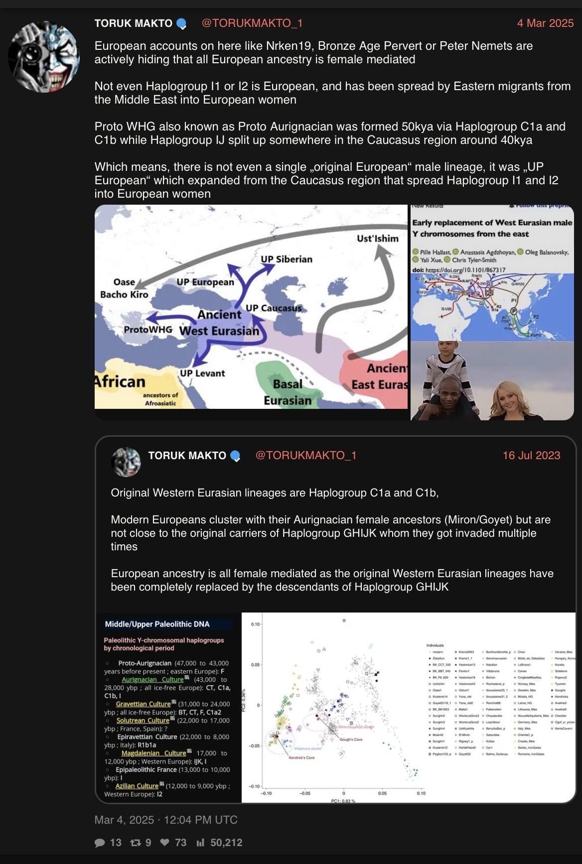 >>3122657He's also saying that haplogroup R is East Eurasian and haplogroup I is Middle Eastern