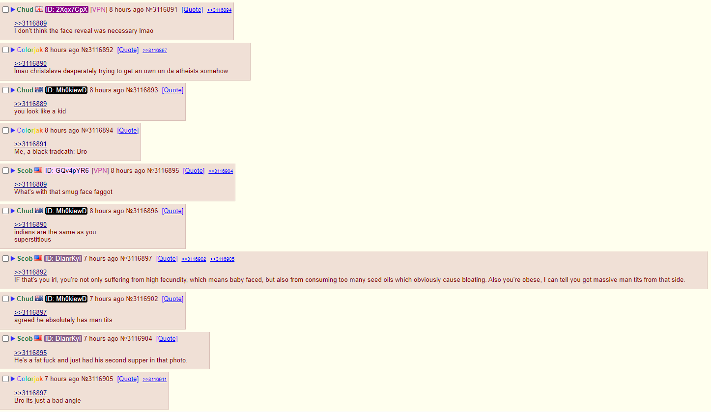 >>3124168I think it's legit him because of how angry he got, but the other atheists thought it was a real selfie too, except the indian guy earlier.