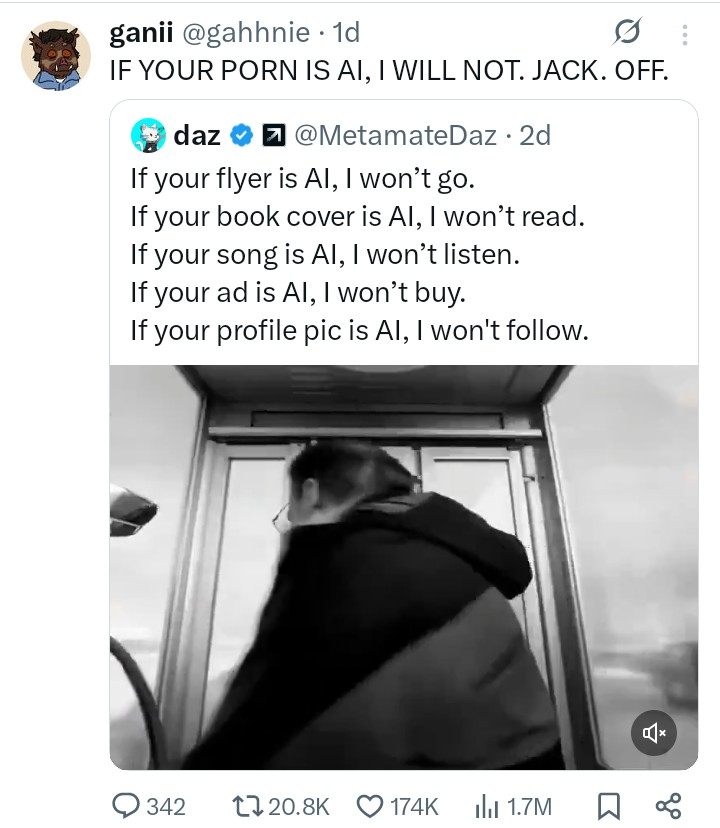 Why do any of these people care about it being AI again? Do they prefer paying high prices for mediocre art?