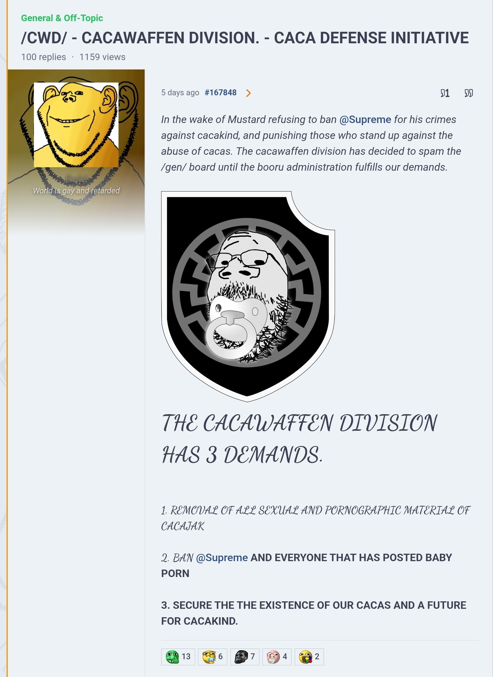 He and welshgod were also banned from the boorum for "botting" (spamming cacawaffen threads to ban babyjak)