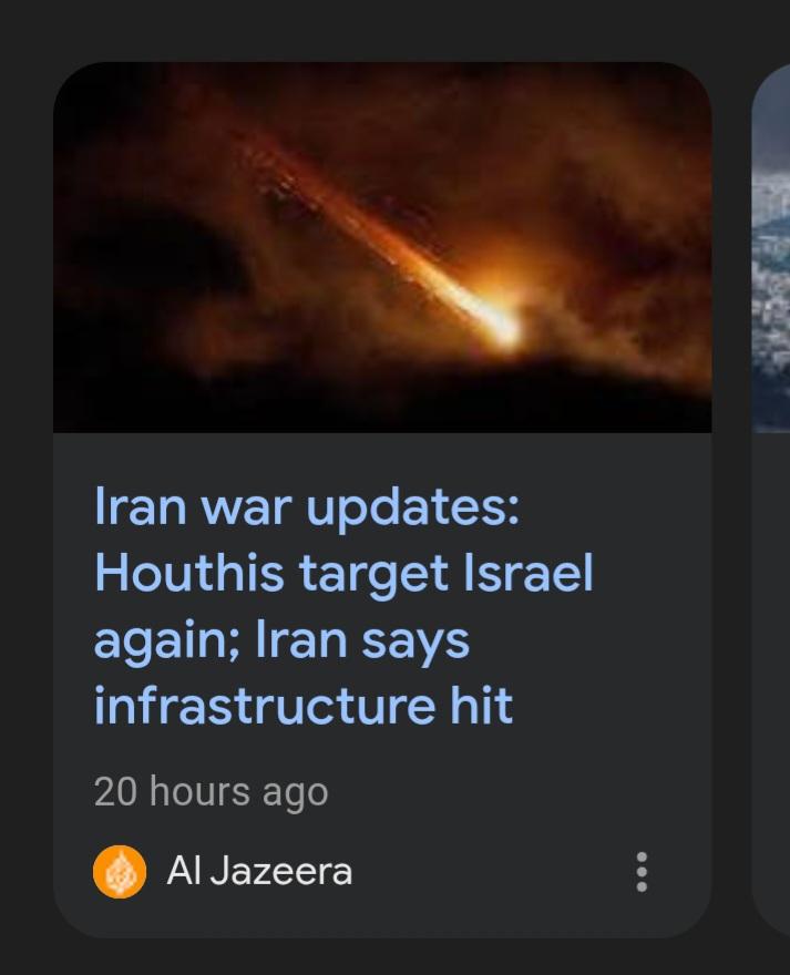 >They should be able to start back up again and remain bombing indefinitely.And do what? It's been a month and nothing has happened wrt what Bibi and Trump want (regime change), if your idea is some kind of war of attrition until Iran hands in the gloves they wouldn't have attempted negotiations(if they did or lied about them). The stated goal of the operation was Regime change. And Iran's proxies are active and striking Israel.