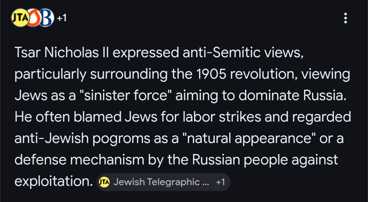 >>3149350Btw If hitler lived in monarchist Russia his opinions on the jews would be seen as moderate compared to the average Russian peasant