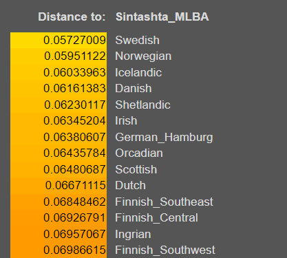 >>3149525The smaller the number and lighter the color the closer genetically. If you take a dna test I can hslp you run some models, doe I can make a synthetic one for you since I have your rough ancestry.
