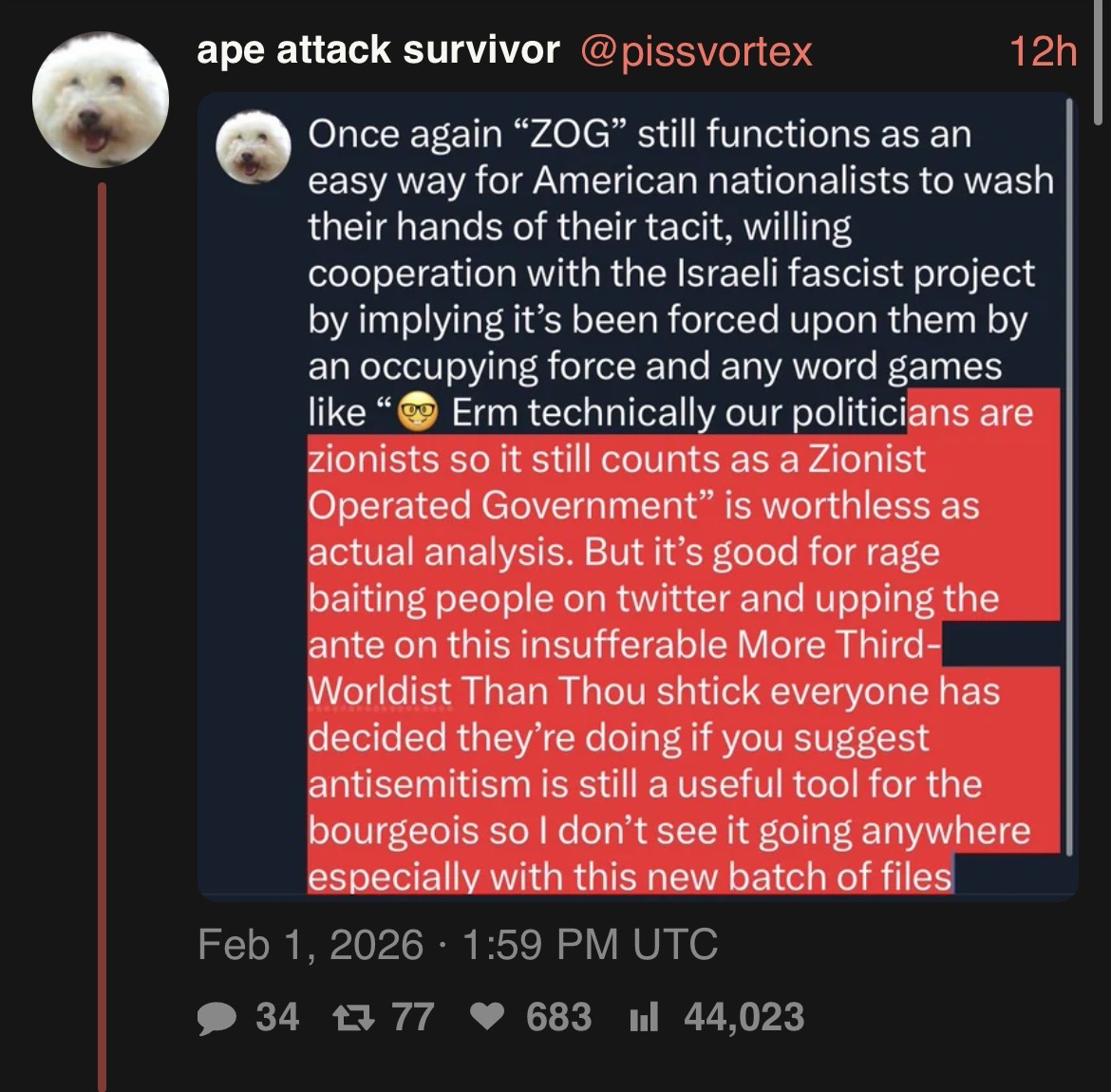 because twitter leftistniggers think that the "alt-right" was doctored by epstein