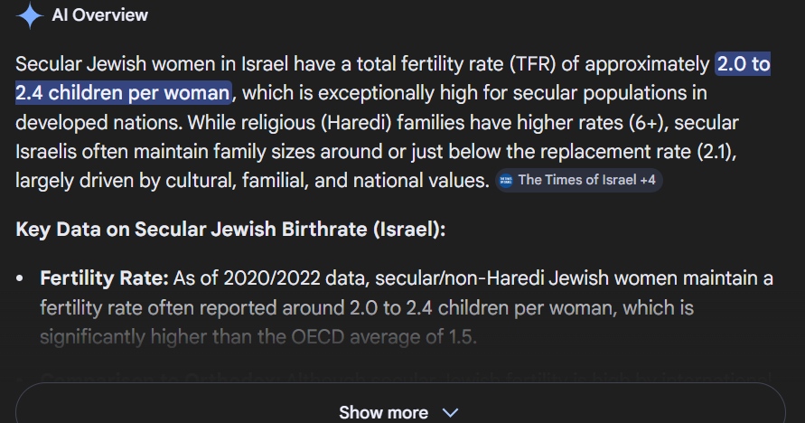 the thing is that, most israelis don't actually work a job and instead rely on government welfare because they are religious and shiet (this is where american tax payer dollars mostly go sadly) so they have more children