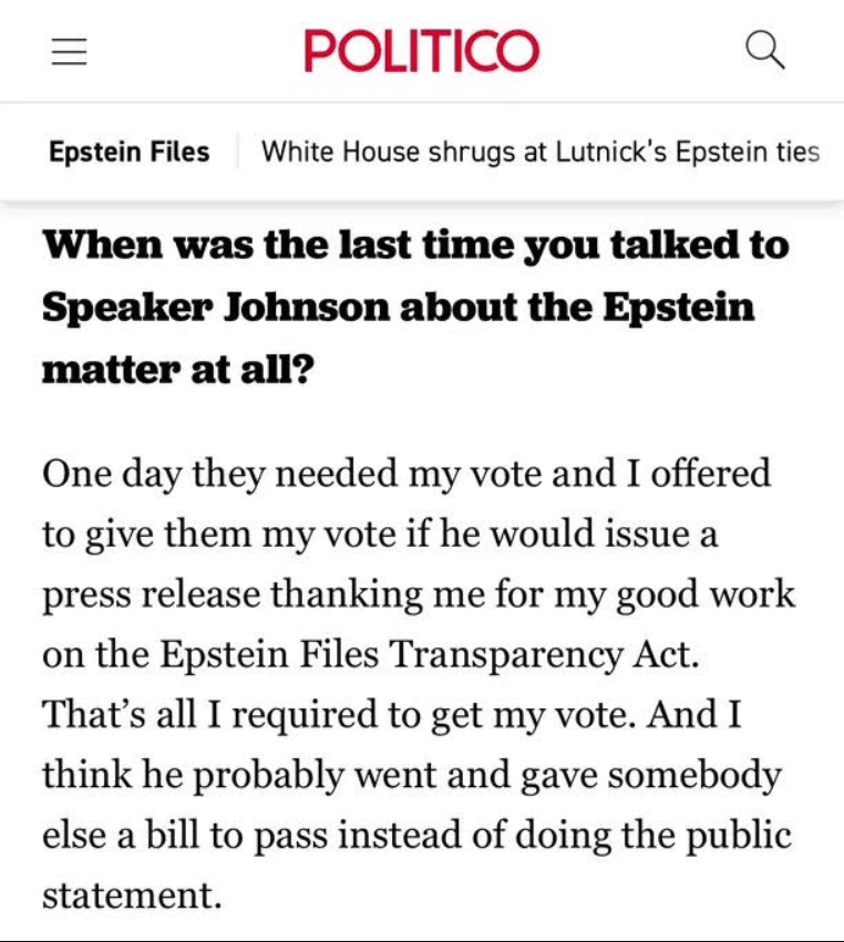 - voted against censuring Stacey Plaskett, who was texting Jeffrey Epstein on the House floor about how to hurt Trump during a hearing